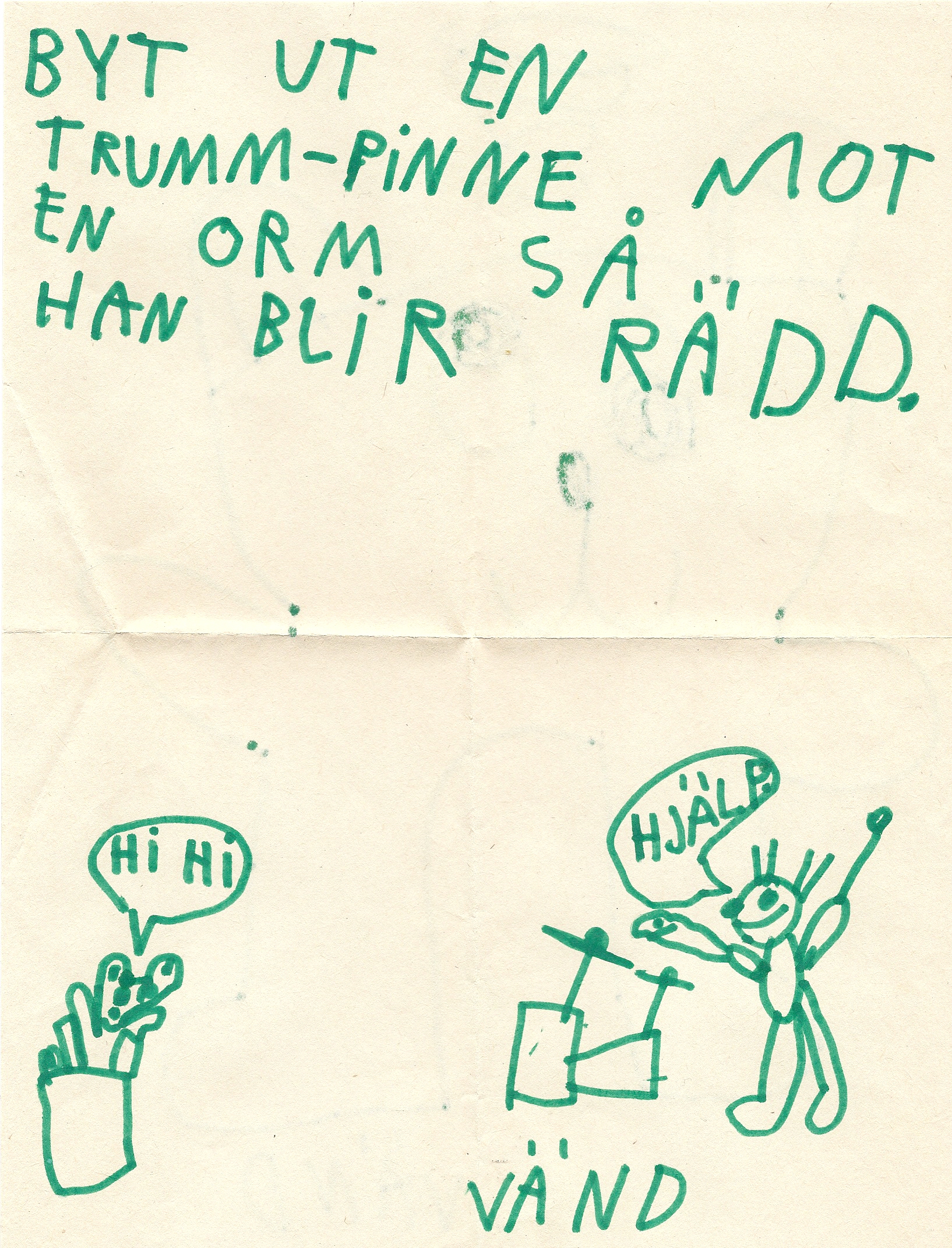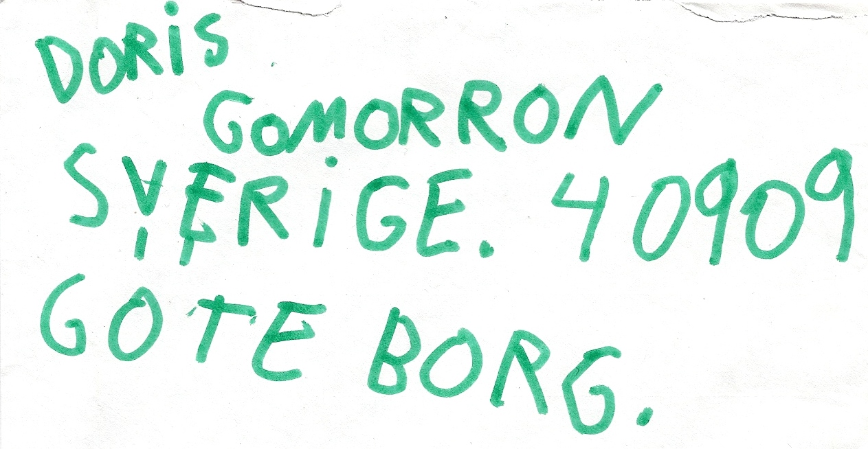 Det var ett förseglat brev, adresserat till lördagsklassikern Gomorron Sverige, som uppenbarligen aldrig har lagts på lådan. Men varför står det ”Doris” längst upp på kuvertet? Baserat på min handstil skulle jag gissa på att jag var 6-7 bast, och vid det laget hade Per Ragnar tagit över som programledare, men hade han någon kvinnlig sidekick? En maskot? Jag försöker googla, men hittar inget av relevans. Jag bestämmer mig för att sprätta upp brevet, och när jag tar del av innehållets fram- och baksida blir jag kanske inte klokare, men i alla fall oerhört nöjd: