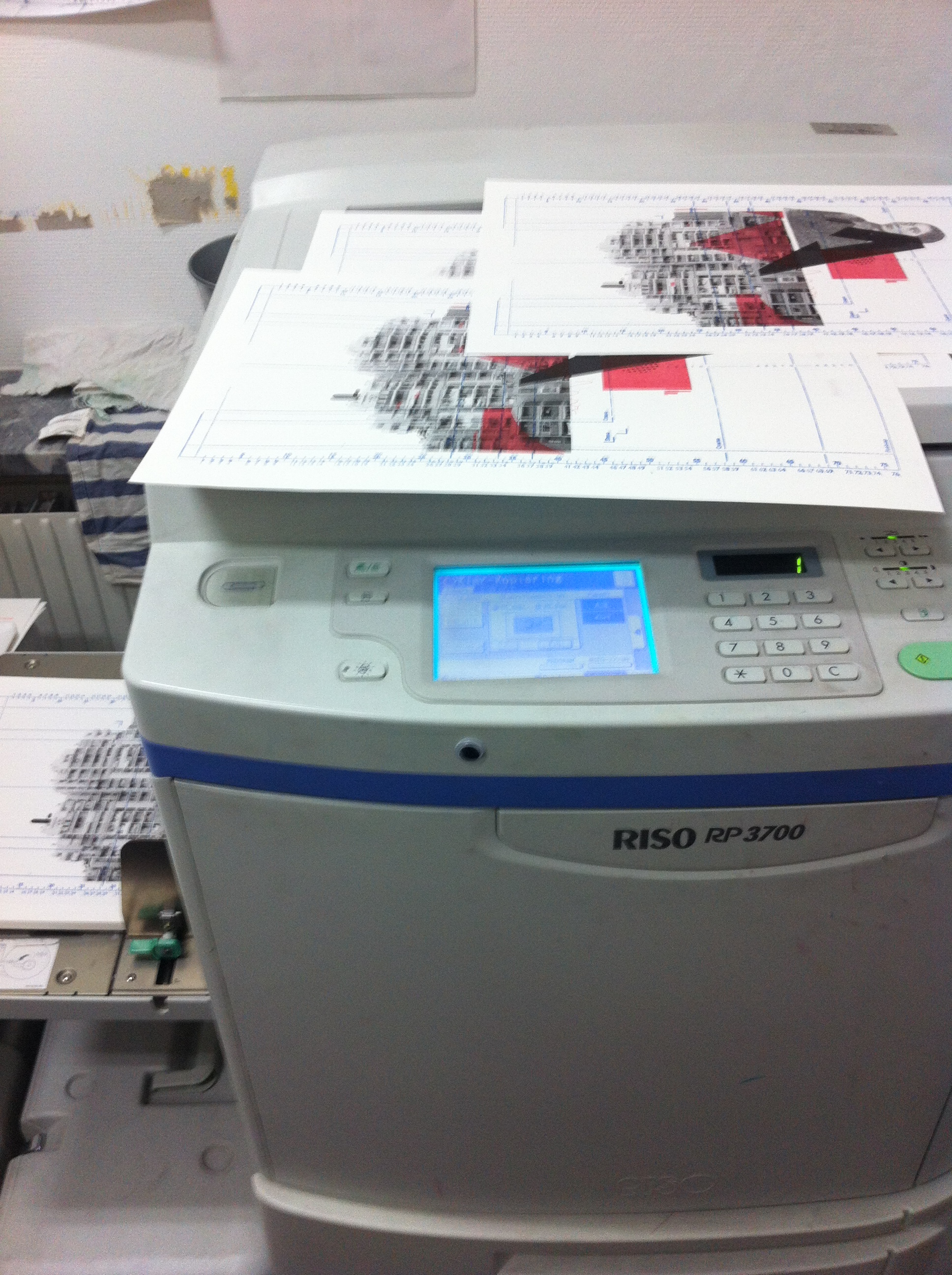 Här är risografen! “A riso, or a risograph is a printing machine that’s a bit between photocopying and screen printing. Generally, we can print anything; Posters, Prints, Books, Fanzines, etc… Riso is great if you want your work to have a hand-printed / vintagy feel, but also works great for modern styles too!”