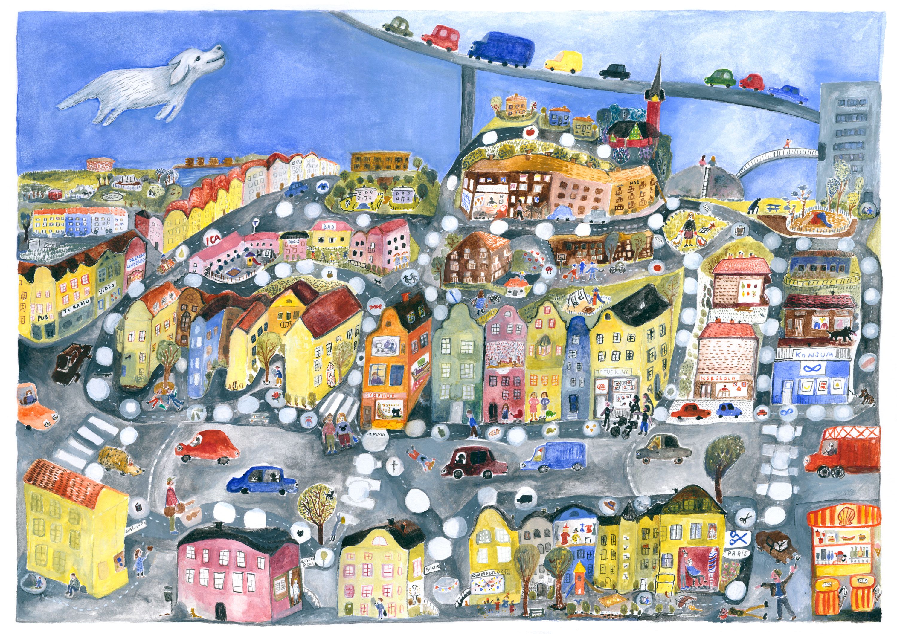 Här kommer en bild av spelplanen till Aspuddenspelet som kommer att finnas för att ses och spelas den 24 oktober på biografen Tellus i Stockholm. Kom gärna dit. Imorgon ska det spelas av studenter på Konstfack. Spelet utspelar sig 1986 i Aspudden.
