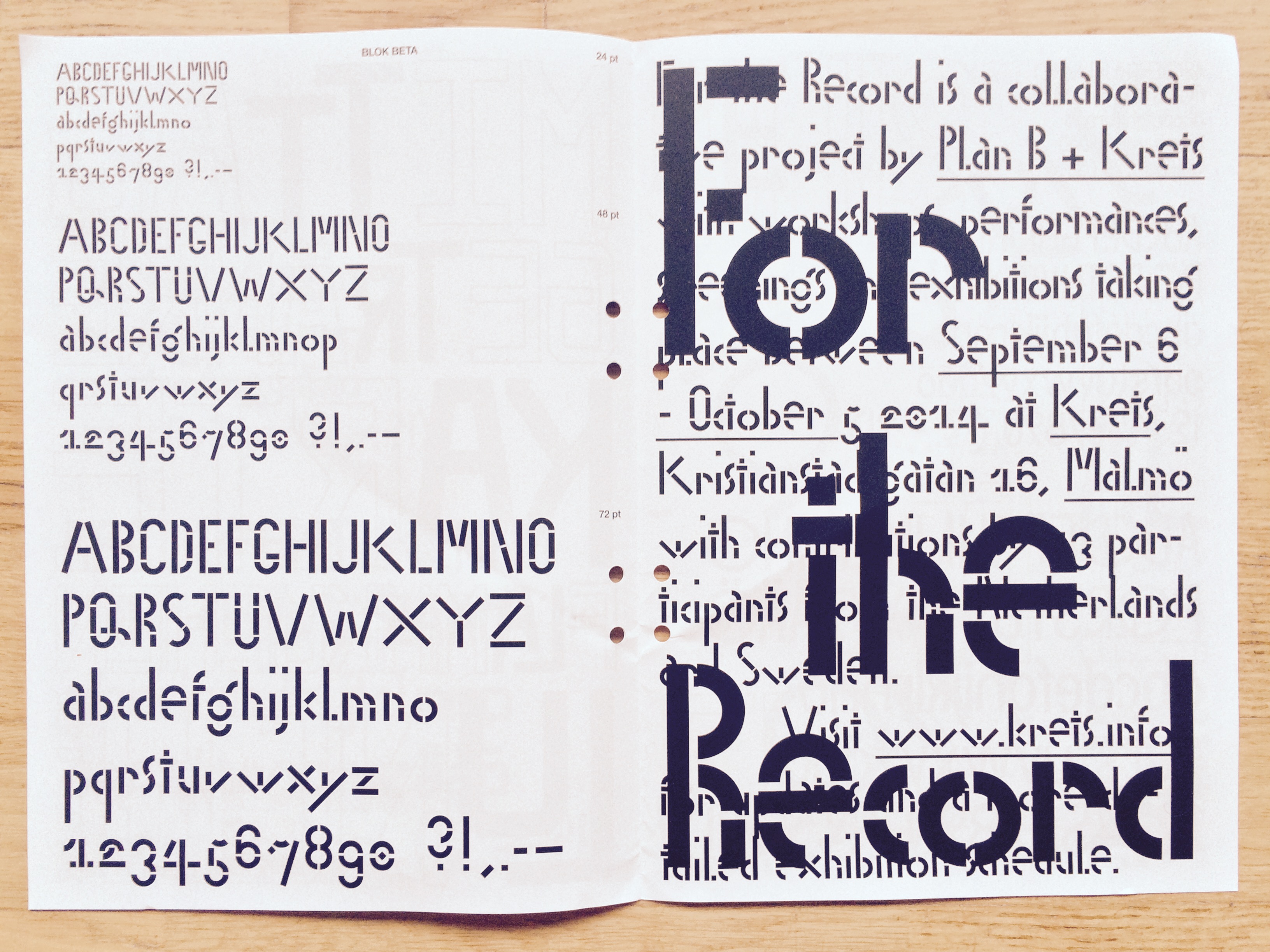 Blok Beta, hämtat ur ett stilprovshäfte – det första – i serien 8 Pages publicerat av svensk-holländska Our Polite Society.