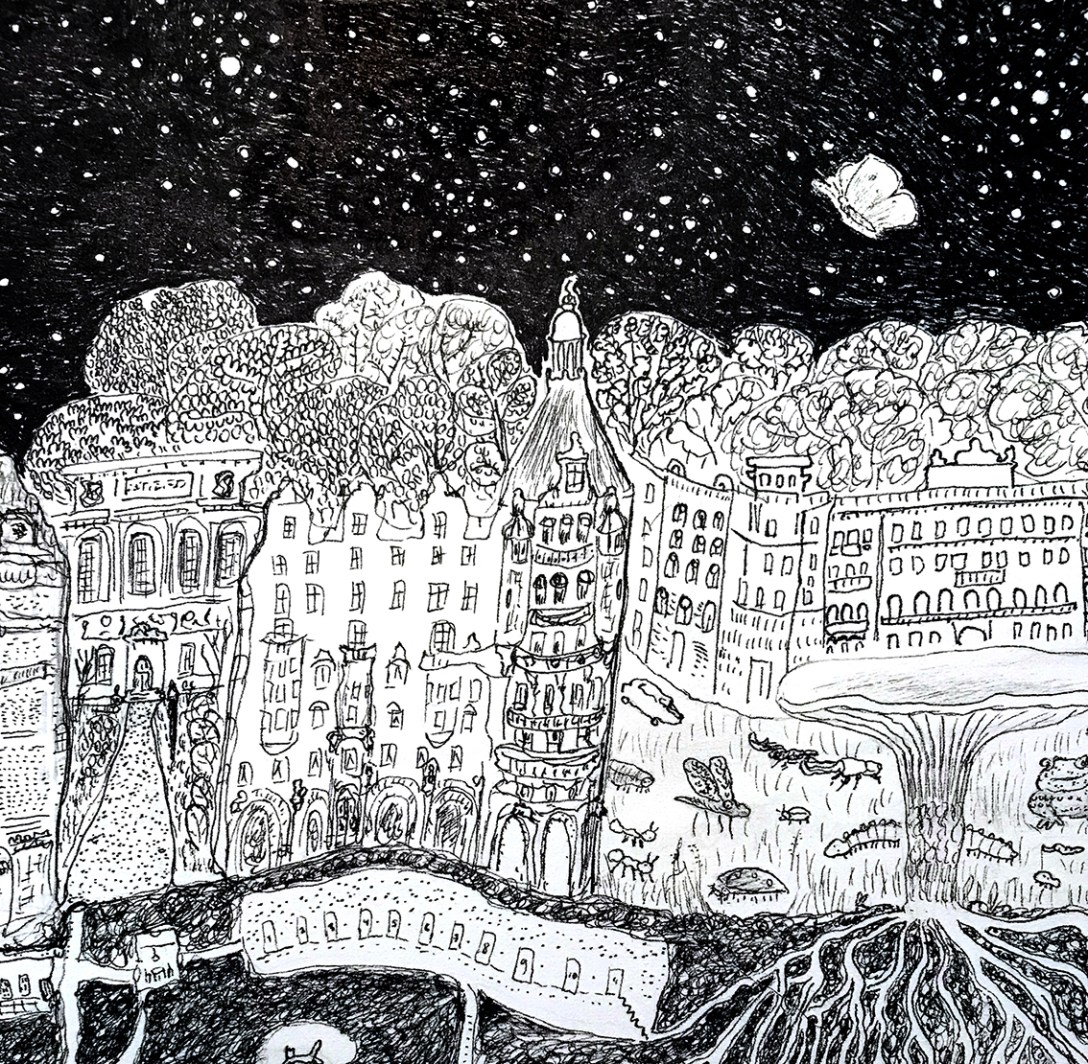 Här är bilden som gjordes för Bcnvt:s evenemang på Rönnells den 8 november 2018. Den är inspirerad av boken Träsket av Kristian Petri och av områdena runt Rönnells. Samt av musiken som skulle spelas den kvällen. Gjorde ett litet tåg med vassa tänder på taket, där banden är på väg till spelningen. Placerade Rönnells i… Continue reading Stad