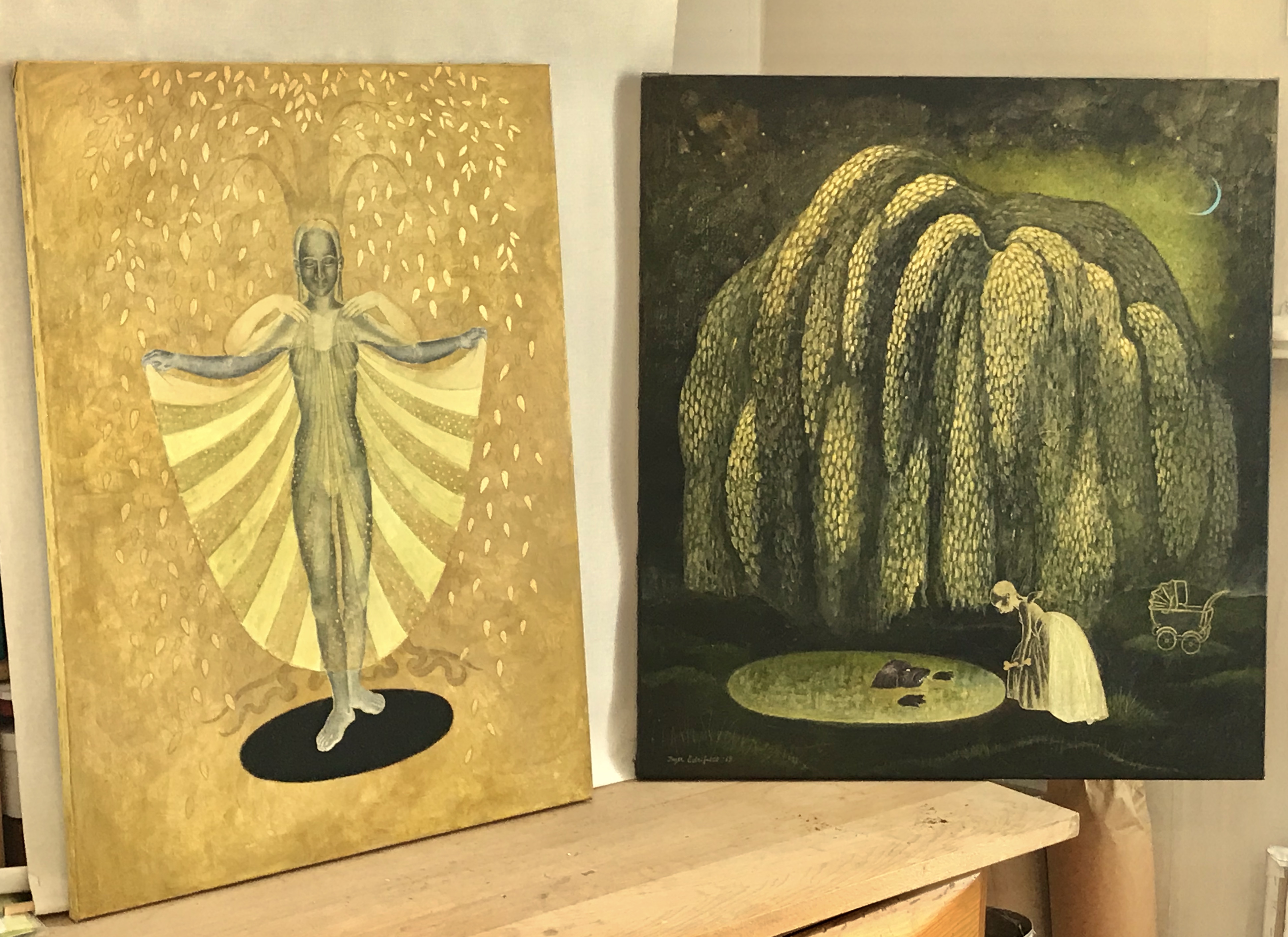 Ur drömmens jordmån heter Inger Edelfeldts utställning av nya målningar på Galleri Agardh & Tornvall (Sibyllegatan 65, Stockholm; visas t o m 7 mars). Det är samma källa som Rut Hillarp i titeln till ett urval av sina dikter kallade ”Nattens språk”: ett konstnärligt uttryck som inte gör anspråk på realism utan rör sig bortom det vardagspåtagliga. Edelfeldt har släktskap med kvinnliga surrealister som Leonora Carrington, Remedios Varo och Dorothea Tanning (alla liksom IE också författare) men tillåter sig ett annat mått av lekfullhet och sagostämning. Det gäller dock att studera detaljerna i de myllrande bilderna: har inte flickan med blommor i famnen ovanligt långa och vassa hörntänder? Hela utställningen går att se på galleriets hemsida; här finns också en fin video av Albin Biblom där Inger Edelfeldt berättar om målningarna.